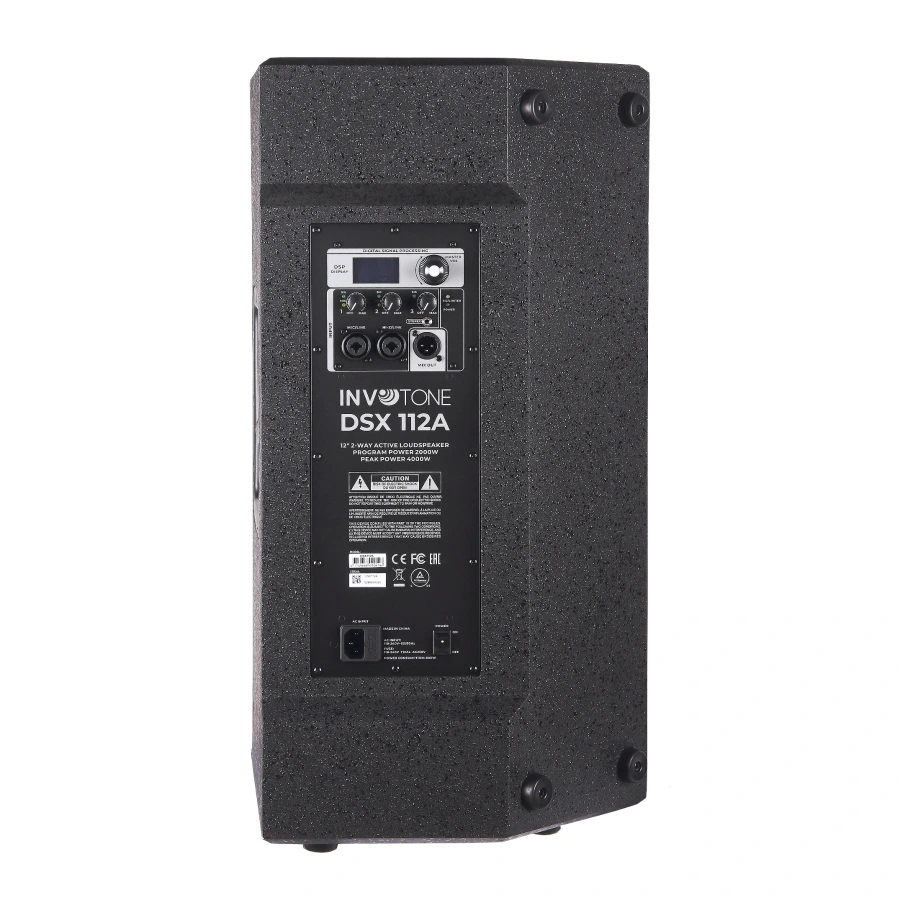 НЧ - 12' динамик с 3' звуковой катушкой ВЧ - компрессионный драйвер 1 дюйм, звуковая катушка 1,75 дюйма Частотный диапазон (-6дБ) 48Гц-20кГц Max SPL 131 дБ Усилитель класс D, 1000Вт 4 DSP пресета LIVE / MUSIC / SPEECH / MONITOR Электронная защита Тепловая/перегрузка/цифровой лимитер/компрессор Блок питания 110В-240В~50Гц/60Гц Корпус Фанера, устойчивая к износу черная краска, резиновые ножки, металлическая ручка Одно металлическое стандартное крепление на стойку, 10 точек M10 Размеры (ВxШxГ): 637мм x 362.7мм x 350мм Вес: 19.2 кг