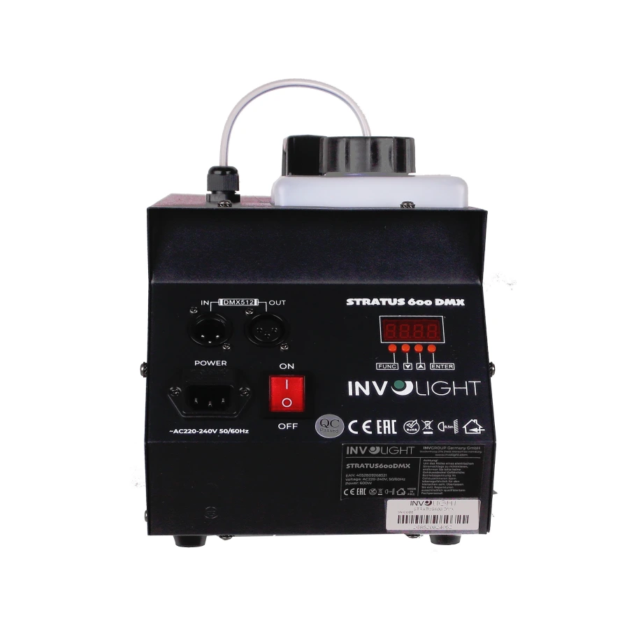 INVOLIGHT 'STRATUS600DMX', это, профессиональный сценический генератор тумана. Управляется по DMX512 или через меню-дисплей. Предназначен для профессионального использования в области световых шоу исключительно внутри хорошо проветриваемых помещениях.