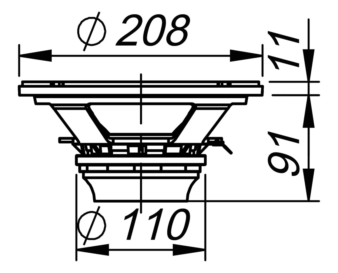 НЧ динамик, феррит, 8' Импеданс 8 Ом Мощность 250 Вт Чувствительность 95 дБ Частотный диапазон 70-2500 Гц