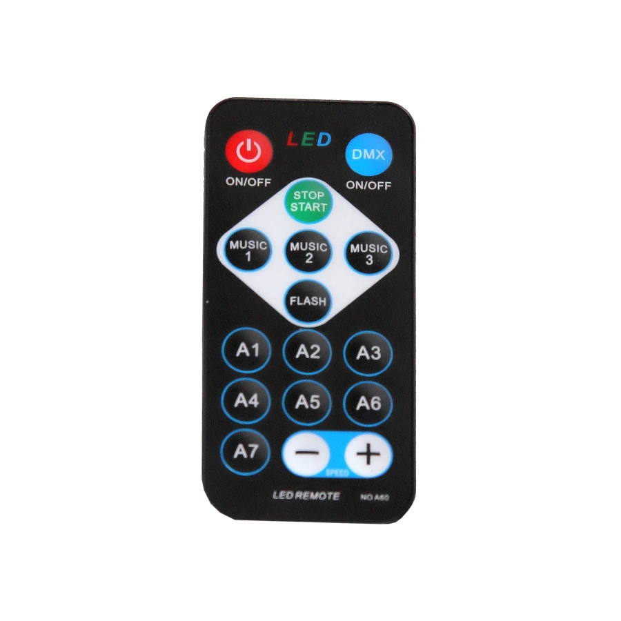 Наименование модели: VENTUS II Тип прибора: Светодиодный лучевой эффект Цветовая гамма: RGB Количество светодиодов: 9 LED-тип: 9*3Вт RGB LEDs (R - 3 х 3Вт; G - 3 х 3Вт; B - 3 х3Вт) Угол раскрытия луча: 6` DMX-вход: 3-контактный разъем XLR-'вход' DMX-выход: 3-контактный разъем XLR-'выход' DMX-режим: 7 каналов по DMX DMX-функции: Изменение Цвета, Стробоскоп, Управление движением мотора Функции в автономном режиме: Авто-программы, Звуковая активация, Master/Slave - режим Элементы управления: Menu, Enter, Up, Down ('Режим', 'Установка' 'Вверх', 'Вниз',) Элементы индикации: Светодиодный дисплей с 4-клавишами управления Рабочее напряжение: AC110-240В, 50/60Гц. Потребляемая мощность: 20Вт. Разъем питания: IEC-разъем Материал корпуса: ABS - пластик Цвет корпуса: Черный Габариты: 210 x 165x 190мм Вес: 1,6 кг