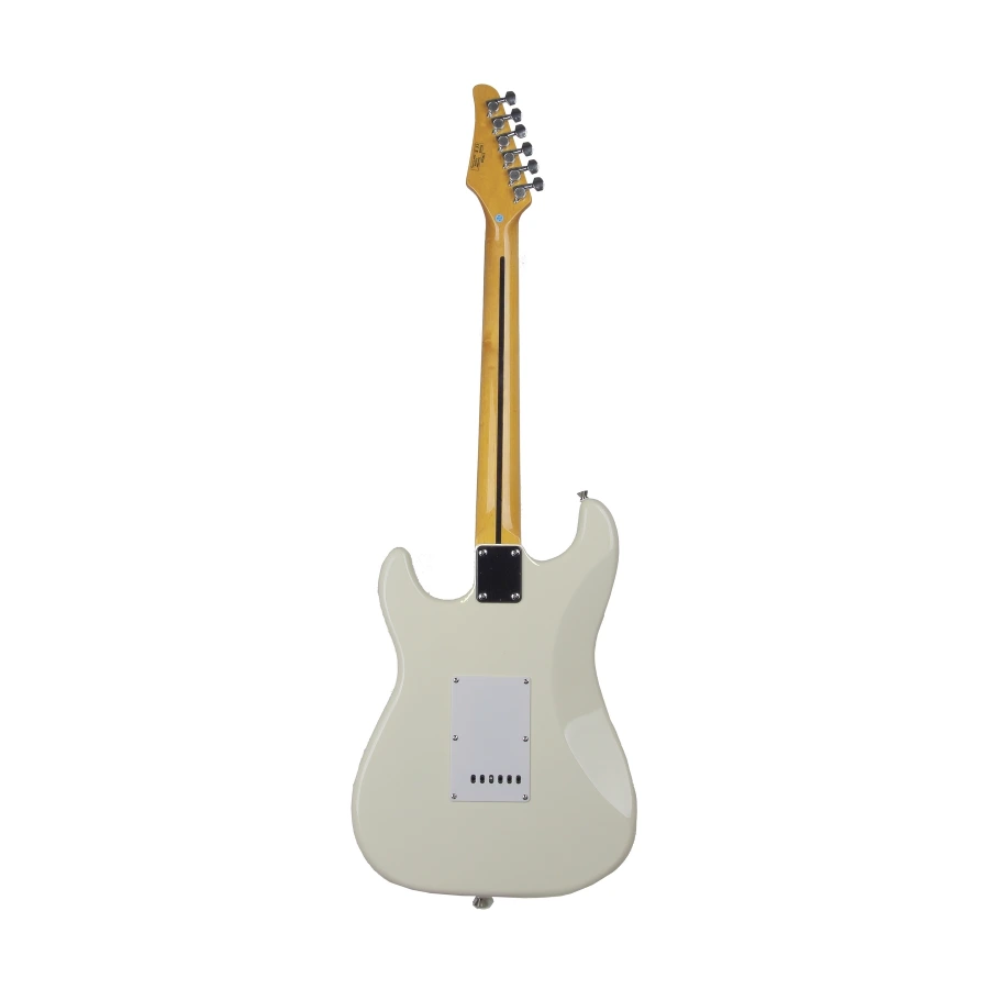 Форм-фактор: Стратокастер (Stratocaster) Мензура: 648 мм (25,5 дюймов) Корпус: ольха Гриф: болчёный, клён+палисандр Ширина грифа у верхнего порожка: 42 мм Лады: никель, 22 шт. Бридж: хром, 6-опорное тремоло Накладка грифа: лаурель Звукосниматели: S-S-H (керамические сингл-сингл-хамбакер) с возможностью отсечки Управление электроникой: 1V/1T/5P (один регулятор громкости, один регулятор тембра, пятипозиционный тумблер) Колки: хромированные, литые Цвет: белый, глянцевый Вес гитары: 3,5 кг
