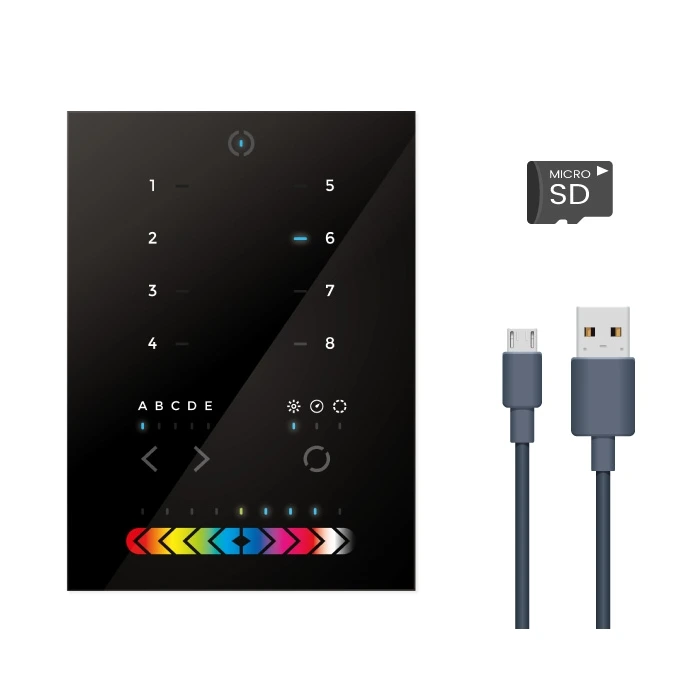 Входное напряжение: 6-9V 0.6 А DC (блок питания в комплект не входит) Выходной пртокол: lDMX512 (x2) Програмное обеспечение: PC, Mac, планшет, смартфон Подключение: USB, Ethernet RJ45, RS232, 8 контактных портов, Реле выхода Память: микро SD-карта 4 ГБ макс., FAT16/32 Рабочая температура: от 10 `C до 50 `C Установка: настенная Цвет: черный Размеры: 146x106x11 мм Вес: 247 г