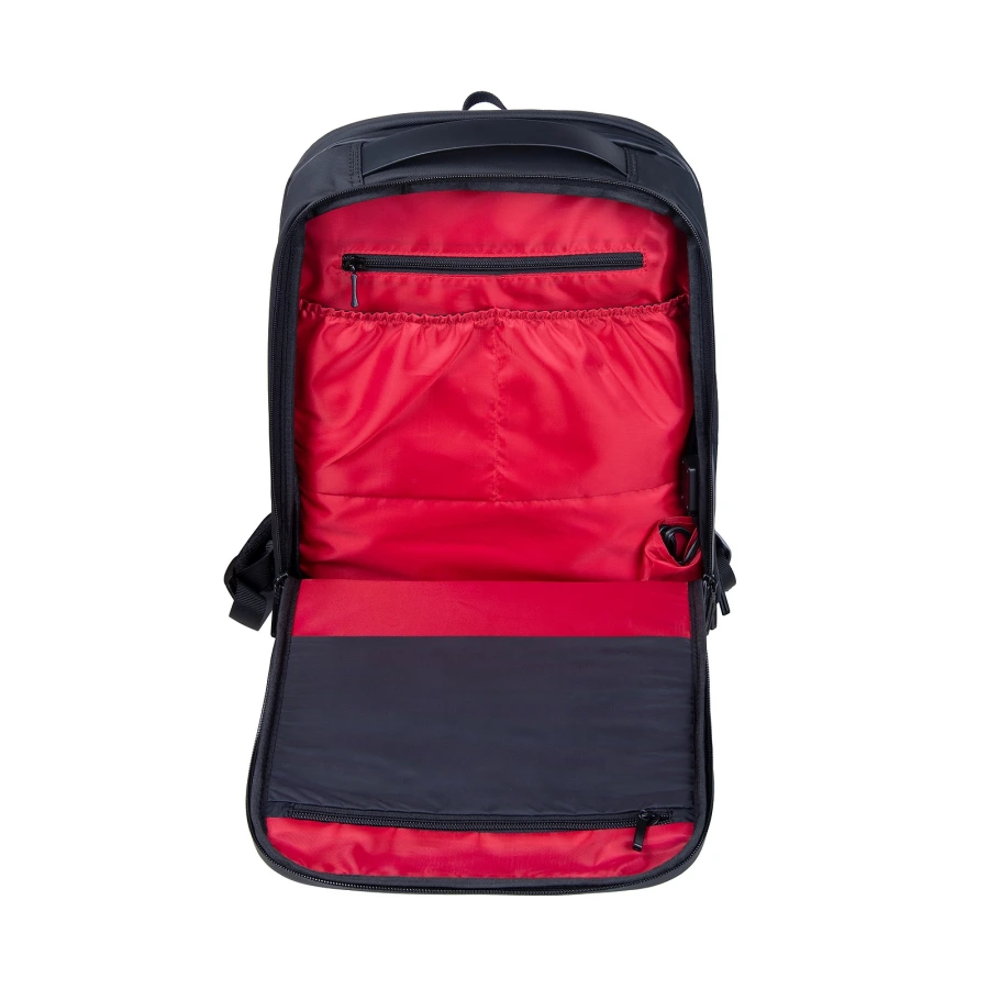 рюкзак имеет 2 основных отделения, основное отделение для личных вещей имеет внешнюю защиту из EVA пластика, два открытых кармашка и два кармана на молнии для документов, карабин для ключей. на спинке рюкзака отделение с карманом для ноутбука до 15 дюймов, дополнительным карманом для планшета и карманом сеточкой на молнии. внешний вход USB для пауэр-банка и micro USB. на спинке рюкзака имеется скрытый карман для документов и карман для банковской карты на рюкзачной лямке.