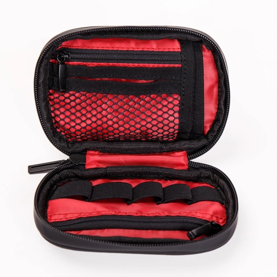 Цвет черный; Состав: водооталкивающая ткань Oxford Vinil. подкладка NYLON210PU. Размер: 105х150х30 мм; Вес: 0.1 кг Стенки сумки с мягким наполнителем внутри. Есть два кармана на молнии, карман в сеточку, универсальные отсеки для флеш-карт различных размеров, три кармана под визитки или банковские карты. Основной отсек закрывается на водооталкивающую молнию , снаружи сумка выполнена из водонепроницаемой ткани черного цвета на основе ПВХ.