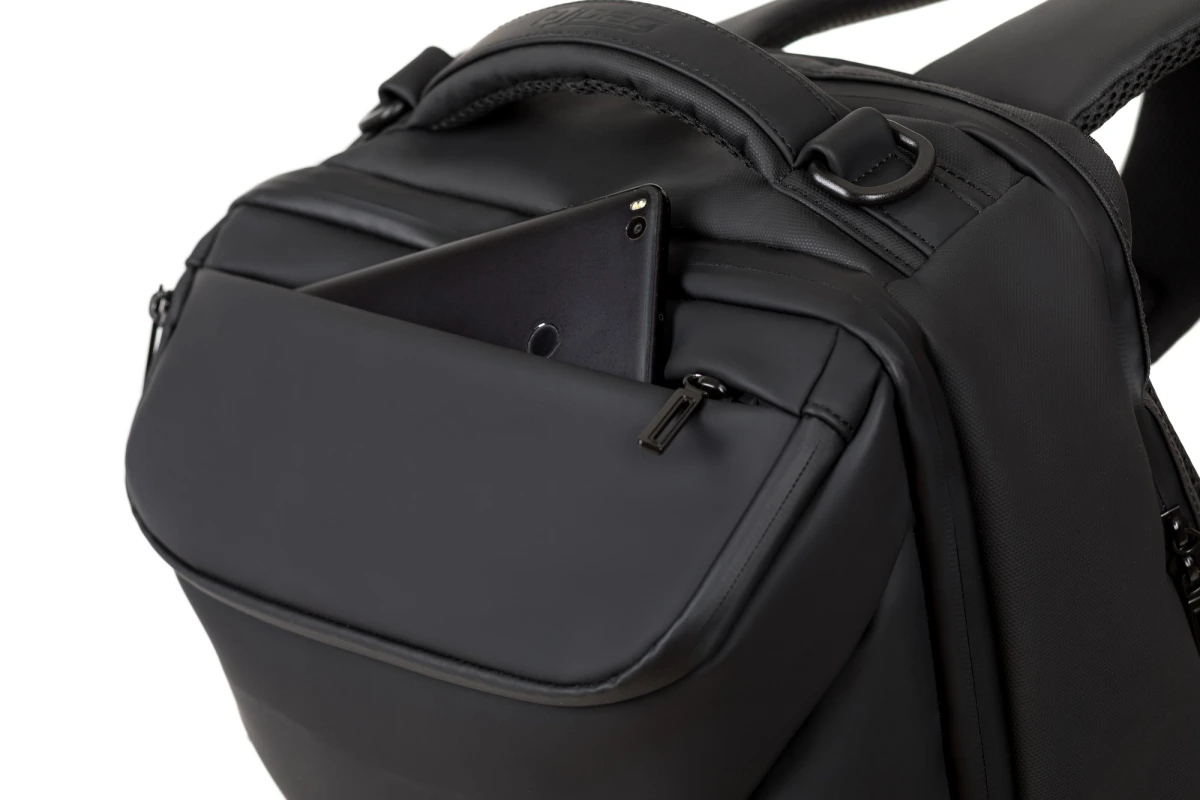 Водоотталкивающая ткань. Защитные водоотталкивающие молнии фирмы SBS. Наличие удобных и практичных внешних карманов для документов, ключей, банковских карт на рюкзачных лямках. Много внутреннего пространства и карманов для различного применения общим объемом 24 литра. Удобные лямки рюкзака не давят на плечи, а эргономика рюкзака снимает нагрузку со спины.