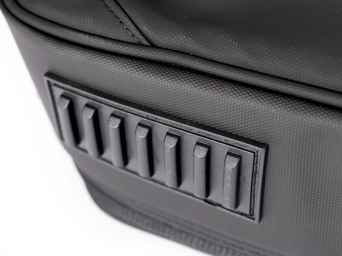 Сумка имеет два внешних кармана на молнии, на каждом клапане есть сетчатый карман на молнии. Большой вместительный карман, куда легко поместятся необходимые ключи, наушники или личные вещи, также имеет дополнительный сетчатый карман на резинке. В верхнем кармане вы найдете два удобных подсумка для мелочей, один плоский карман на молнии и специальный шнур с карабином для ключей. Внутри сумки есть большой мягкий карман для ноутбука с диагональю экрана до 19 дюймов, карман на молнии для документов, проводов, зарядных устройств; Крышка сумки от контроллера внутри отделена ковриком с мягким наполнителем 10 мм с двумя карманами на молнии размером с лист формата А4 каждый, со стороны контроллера коврик покрыт флисом; Кодовый замок TSA, а также застежки-молнии YKK и механизмы основных карманов и основного отделения, а также застежки YKK на лямках рюкзака. В основном отсеке для контроллера дополнительно имеются 4 специальные прокладки для боковой защиты вашего оборудования.