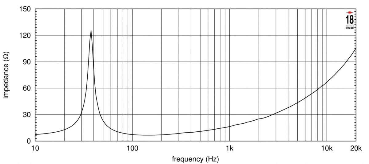 Низкочастотный динамик, диаметр 18’’ Импеданс 8 Ом Мощность 1300 Вт AES Чувствительность 97 дБ Частотный диапазон 33...2500 Гц