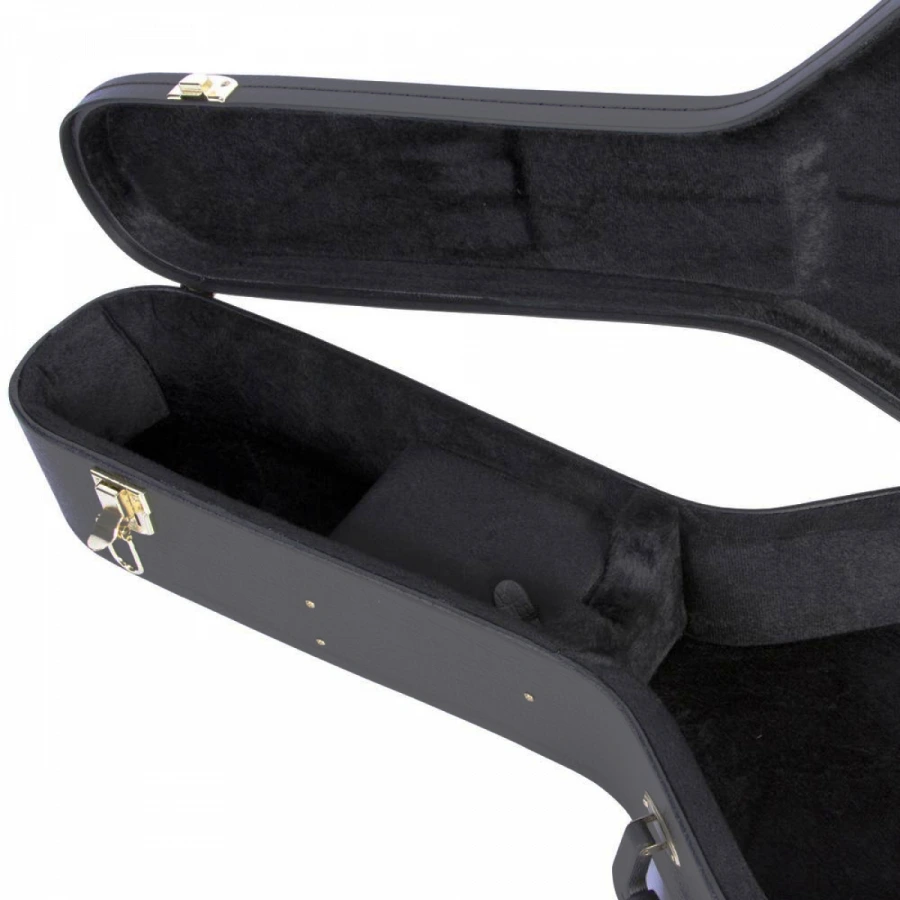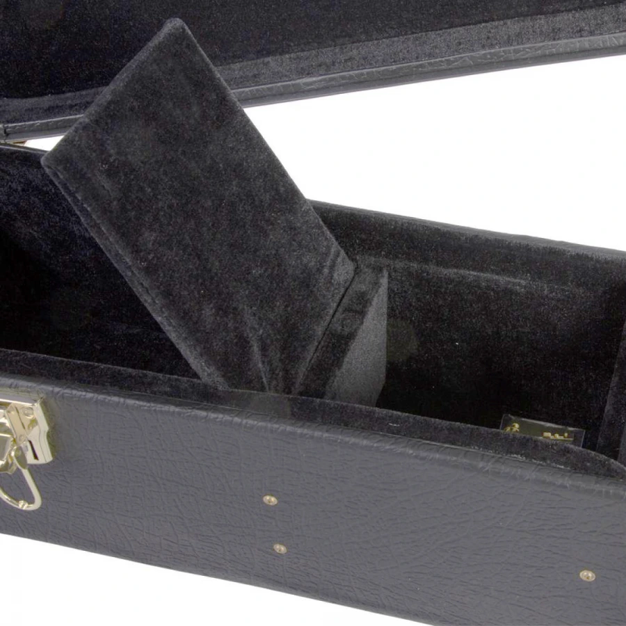 Фанерная конструкция с виниловым покрытием Плюшевая подкладка Внутренний отсек для аксессуаров Замок с ключом Длина - 1080мм Глубина - 110мм Нижний Бой 447мм Верхний Бой 350мм Ширина Шеи 150мм Ширина Грифа 160мм Цвет - черный цвет