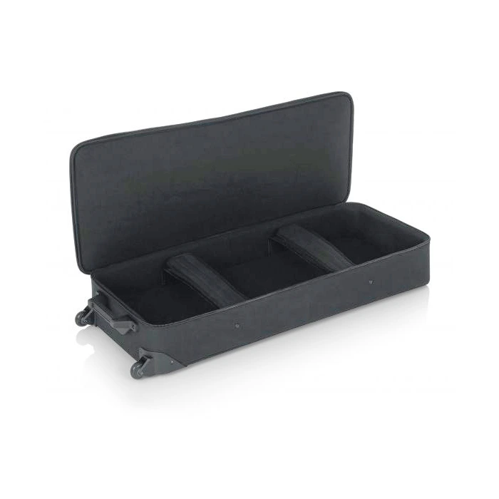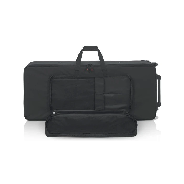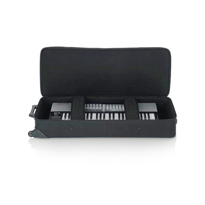 Прочная конструкция. Толстые стенки надежно защищают инструмент от повреждений. Регулируемые мягкие ремни для крепления клавиатуры. Ручка и колеса для комфортной транспортировки Боковой карман для аксессуаров.