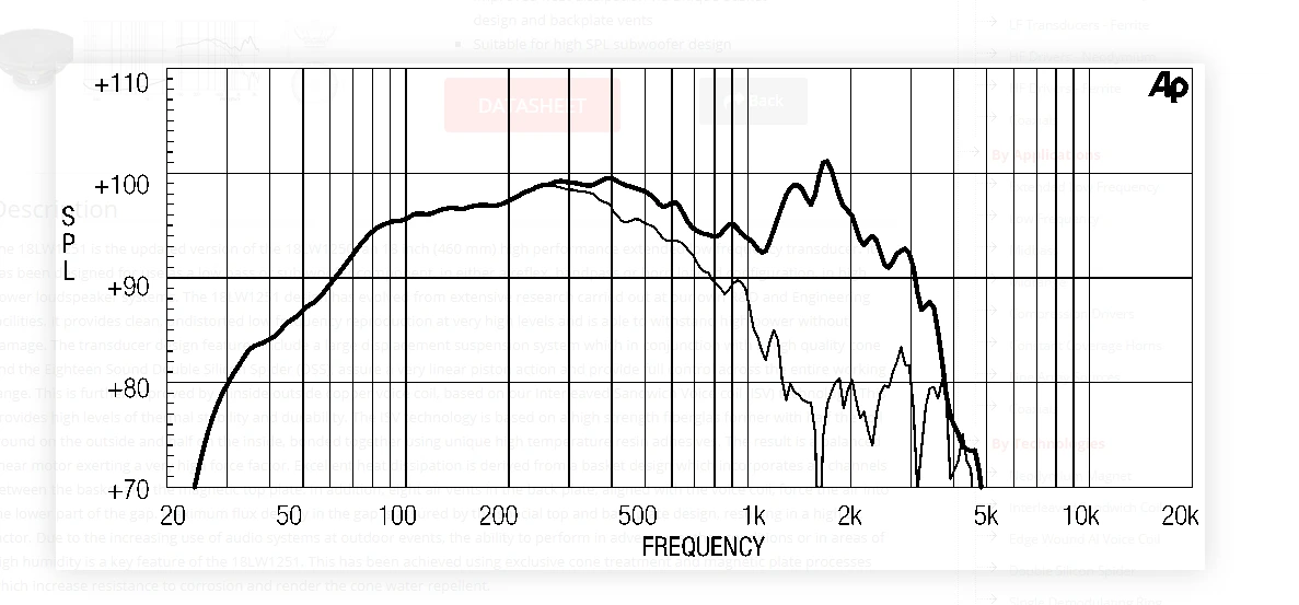Низкочастотный динамик, диаметр 18’’ Импеданс 8 Ом Мощность 1000 Вт AES Чувствительность 98 дБ Частотный диапазон 35...3500 Гц
