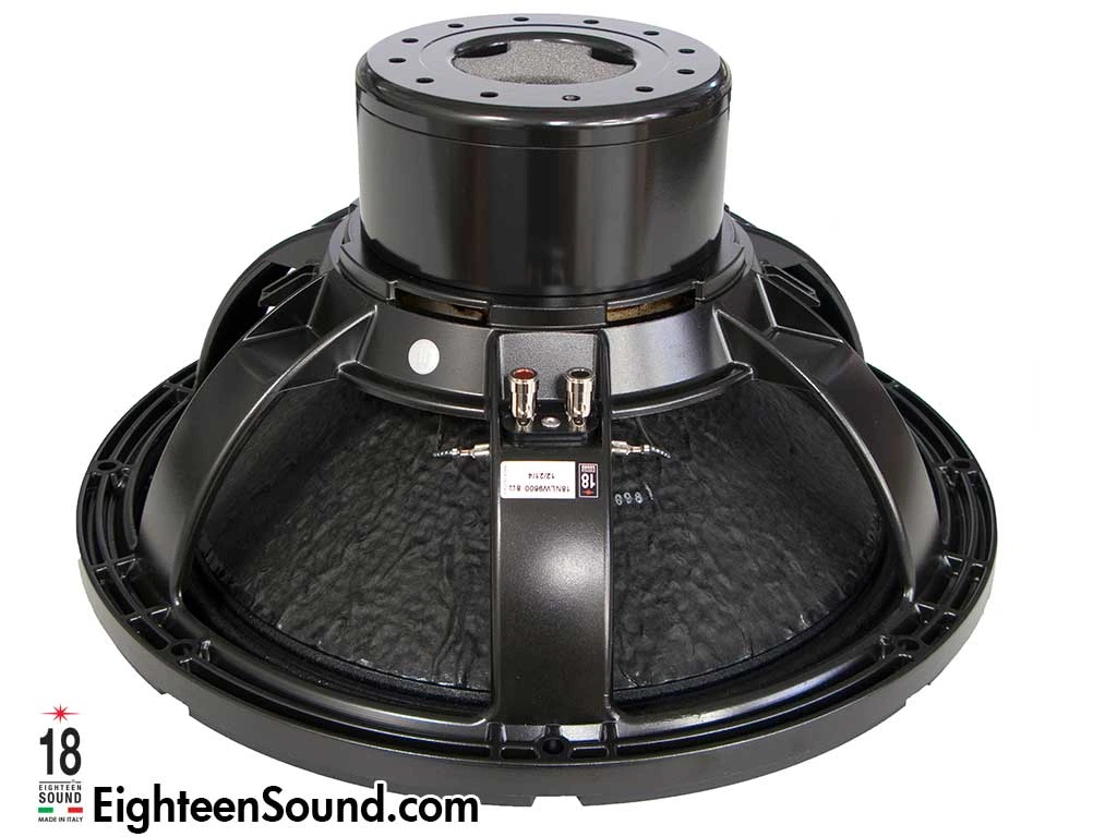 НЧ динамик 18sound для сабвуфера, диаметр 18’’ Магнит неодим Импеданс 8 Ом Мощность 1800 Вт AES Чувствительность 96 дБ Частотный диапазон 30...2300 Гц