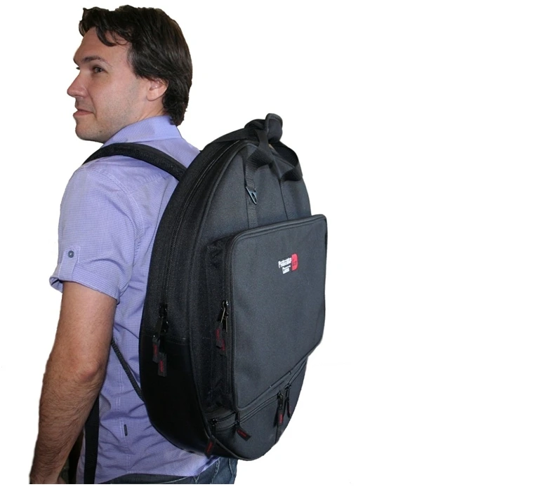 Ручки для переноски, 2 регулируемых ремня на плечо с уплотнителями Большой карман на передней части для аксессуаров или барабанных палочек 3 дополнительных кармана Уплонитель на задней части Усиленная ручка для переноски Внутренние отсеки плакированные ПВХ Прочный нейлон 600D и 1200D Усиленный низ