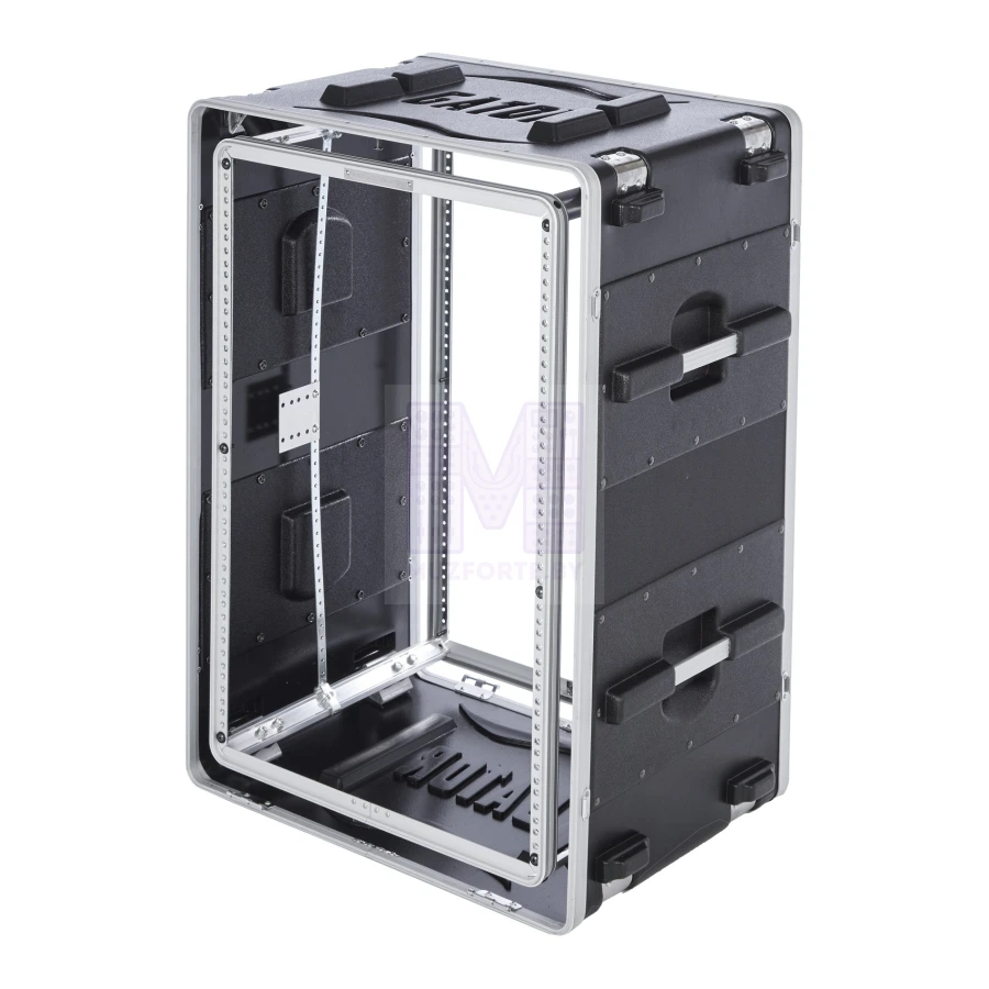 Материал покрытия - ПВХ. 360 градусов вокруг оборудования - вентилируемое пространство. Регулируемая система вывески рэковой рамы внутри кейса. Антишоковые резиновые абсорберы в каждом углу кейса. 7-миллиметровые оцинкованные, легко заменяемые рэковые рельсы. Удобные ручки для переноски и запираемые замки. Внутренние размеры: 41,91 х 48,26 х 77,1 см Вес - 21,77кг