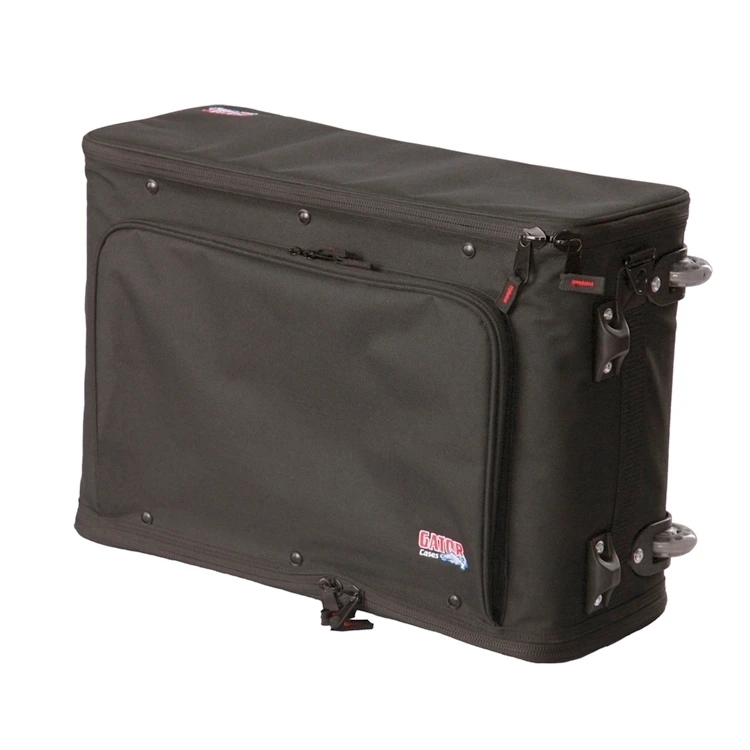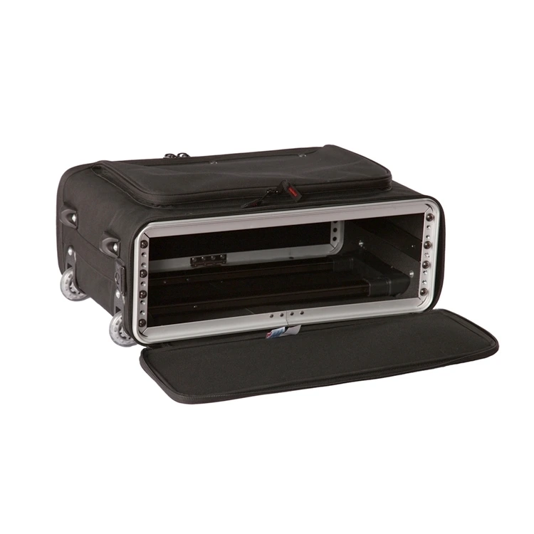 Сумка на колёсах, выдвижная ручка, стальные рельсы, 2U идеально подходит для перевозки звукозаписывающего оборудования, процессоров, модулей и аксессуаров к ним. Дополнительный наружний карман для кабелей;