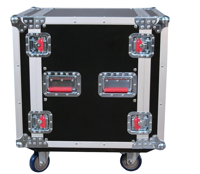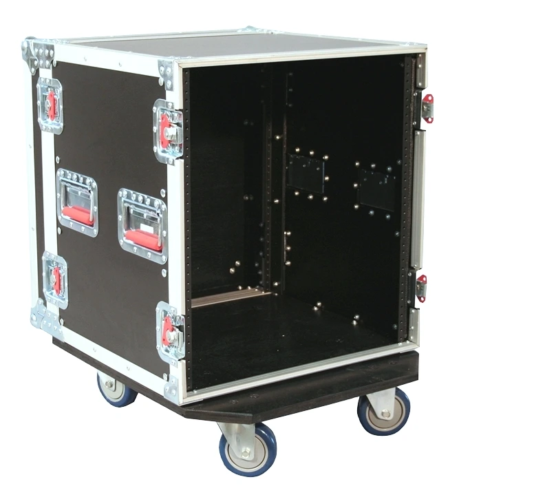 Конструкция из 9-мм-фанеры с ПВХ-покрытием. Флайт-кейсовые эксцентрик-замки и пружинная ручка для переноски с красной отделкой. Антиударные шаровые 'чемоданные' углы с никелировкой. 3,2мм фронтальные и тыловые рэковые рельсы. Каркас - тиснёный алюминий. 4шт 4-дюймовых колеса, два с фиксацией. Внутренние размеры: ДхШхВ - 419 х 483 х 533 мм Рэк: глубина - 514 мм, юниты - 305 мм. Вес - 30,97 кг