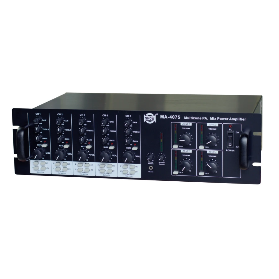 SHOW MA-4075 - трансляционный усилитель мощности 4 канала по 40 Вт , 4 зоны, 50/700/100 В , 4-8 Oм