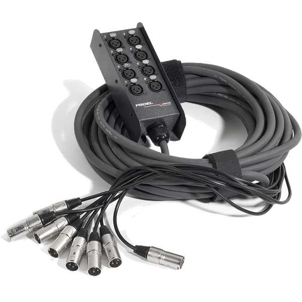 Proel EBN мультикоры изготовлены в прочном в металлическом корпусе. Покрытие износостойкая краска. Малый вес и незначительные потери сигнала характеризуют их как профессиональный инструмент. Высококачественные, с позолоченными контактами разъёмы XLR , защищенные PVC жакетами. CMF кабель с мультиосновой, имеет заземляющий контакт. На коробке смонтированы панельные XLR: Входы – 8 XLR «мама» Длина кабеля - 10 м