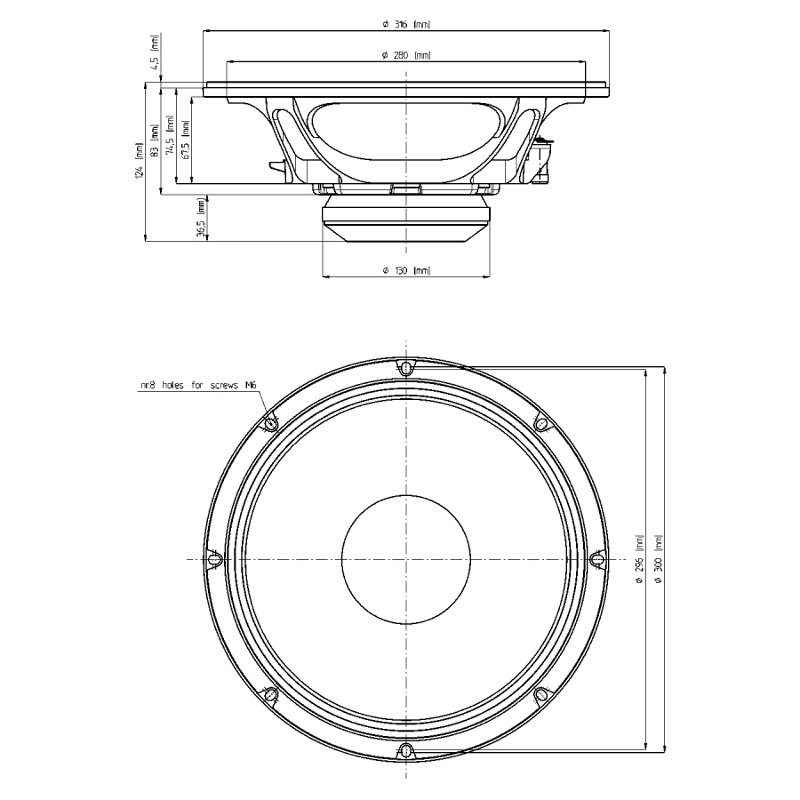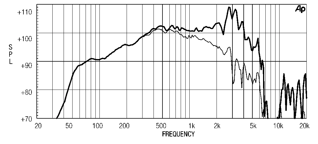 СЧ динамик, неодим, диаметр 12’’ Импеданс 8 Ом Мощность 450 Вт AES Чувствительность 103 дБ Частотный диапазон 80...5500 Гц