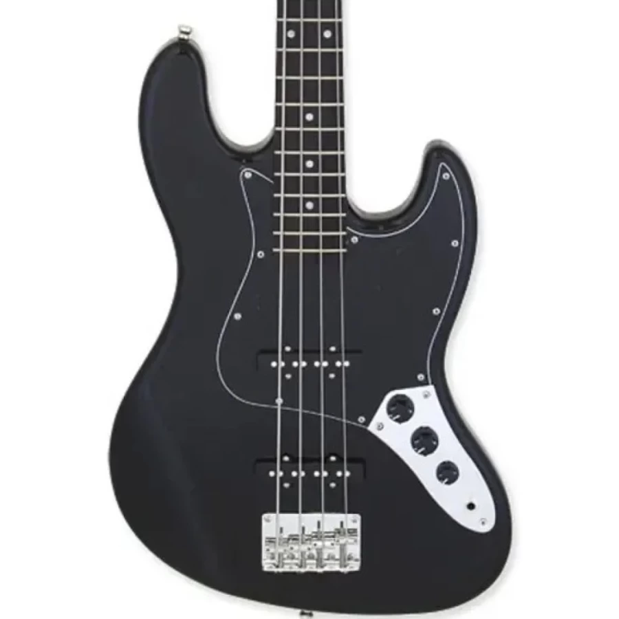 В ARIA STB-JB/B BK используется бридж VFB-1. В качестве звукоснимателей применены два сингла OJ-1. В темброблоке можно найти два регулятора громкости и один регулятор тона. Мензура у гитары длинная и составляет 864 мм (34”) – может использоваться басистами с большими руками. Фурнитура у гитары хромированная, а цвет – чёрный