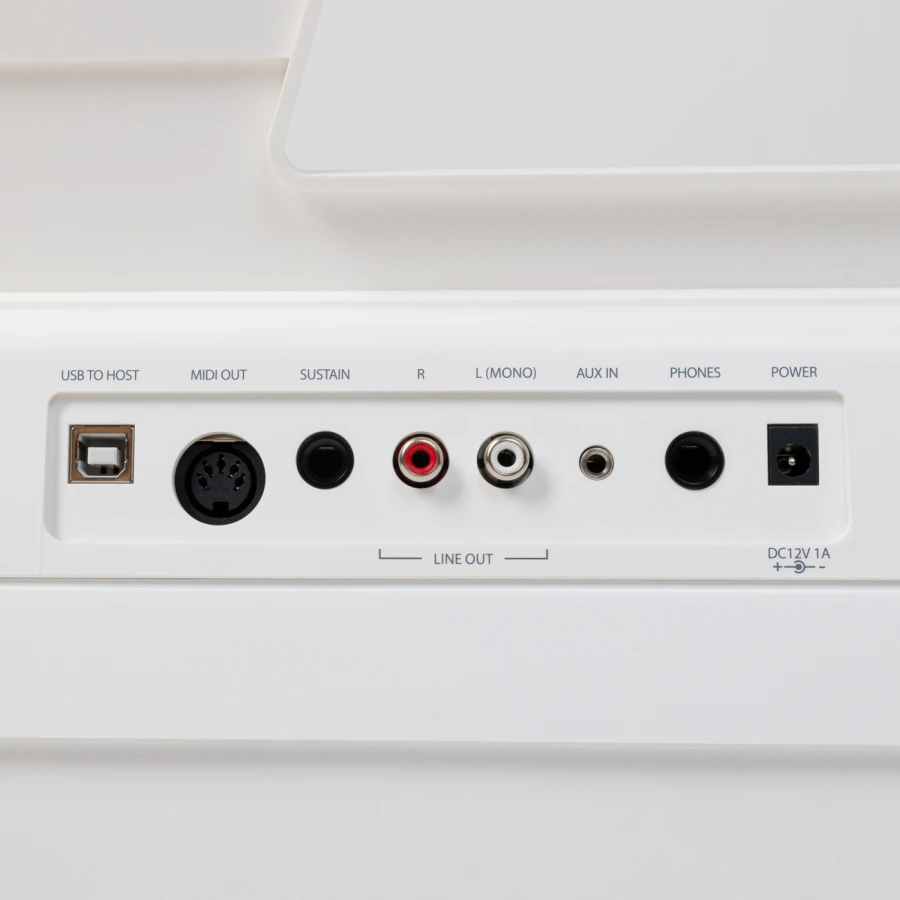 Наушники: фортепиано имеет 2 стандартных выхода под наушники (3.5mm stereo). Благодаря подключению к наушникам занимайтесь в любое время, не мешая окружающим.