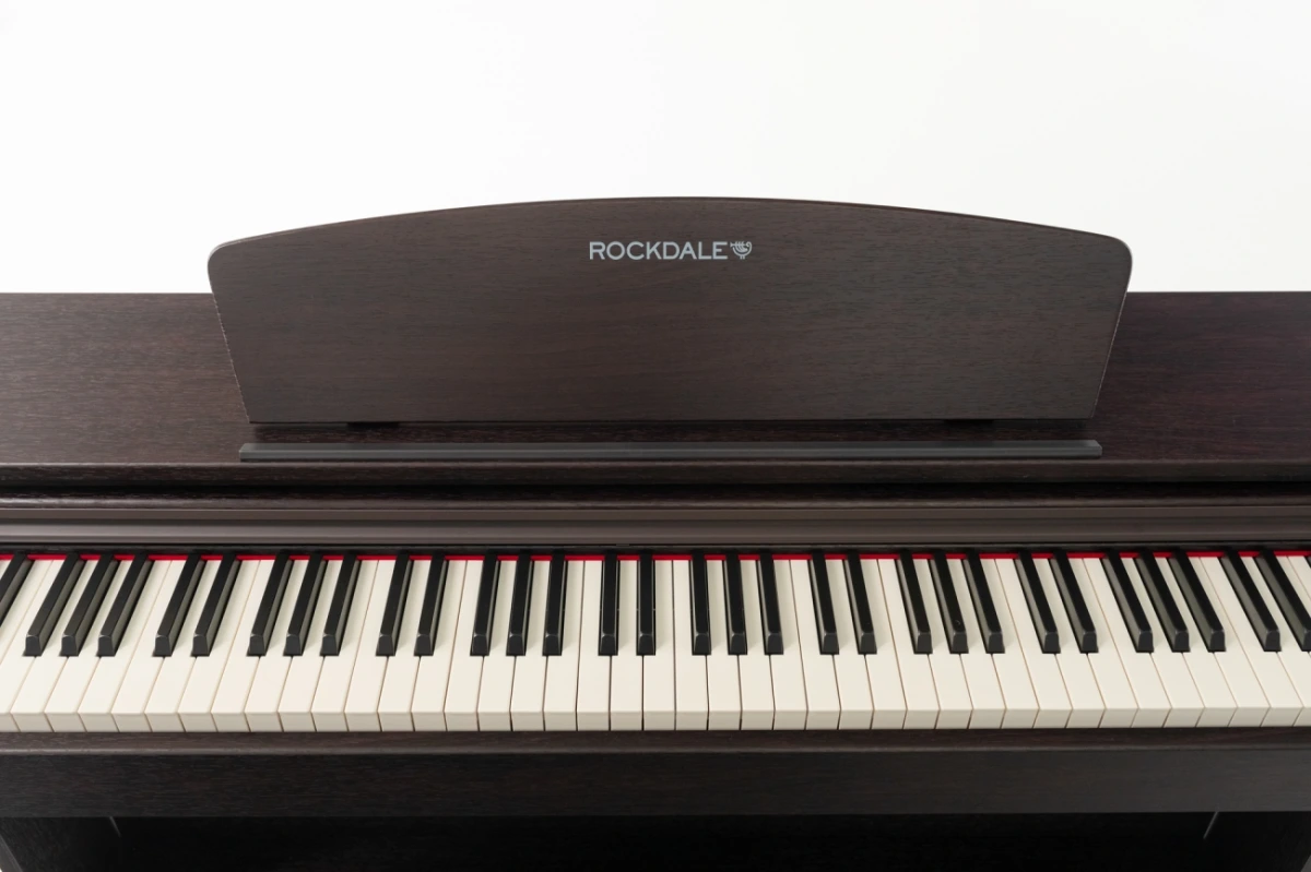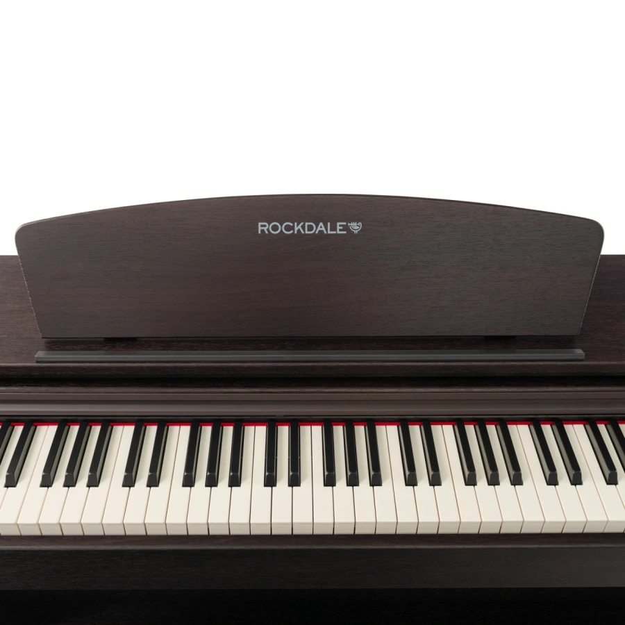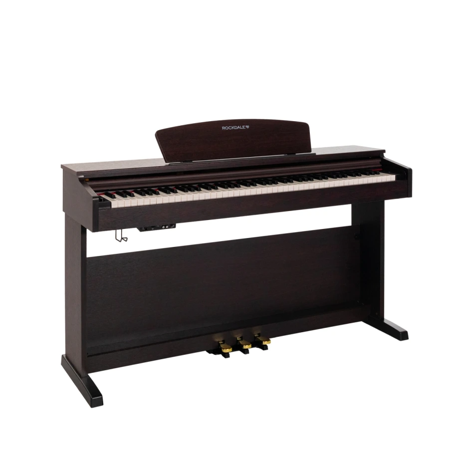 ROCKDALE Etude 128 Rosewood современное корпусное цифровое фортепиано с внушительной функциональностью и полноразмерной молоточковой клавиатурой, которое является полноценной заменой акустическому инструменту. Сочетание передовых технологий с элегантным классическим дизайном. Инструмент идеально подходит для обучения и совершенствования своих навыков игры на фортепиано.