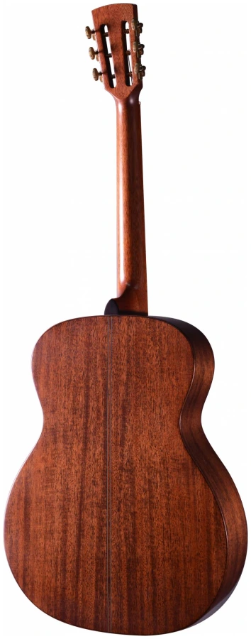 Гитара выполнена из массива верхней и нижней деки махагони и обечайки из махагони, что обеспечивает теплое и глубокое звучание. Гитары менее подвержены влиянию изменений температуры и влажности, обеспечивая стабильное звучание и долговечность инструмента при правильном уходе.