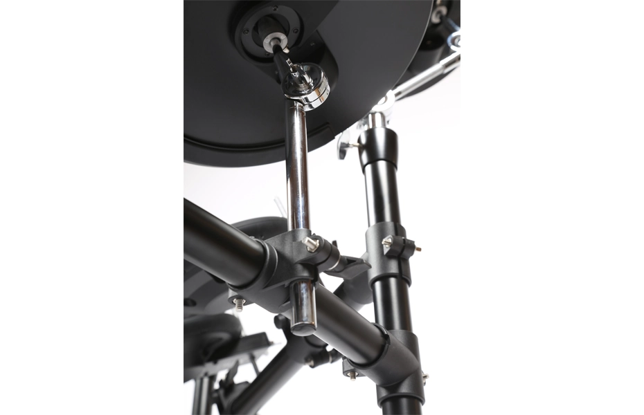 Прочная металлическая конструкция на четрых опорах с новой, улучшенной системой крепления малого барабана и тарелок с помощью шаровых зажимов. Обеспечивает быстрое и гибкое размещение компонентов.