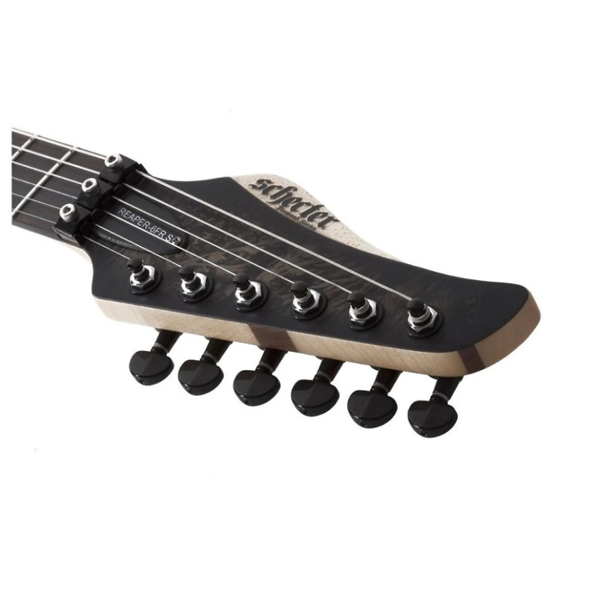 Изящные, резкие, агрессивные - так можно охарактиризовать "убийственные" гитары из серии Reaper. Корпус из болотного ясеня в сочетании с топом из капа, ультратонким профилем грифа, и самого грифа, выполненного из клена/ореха с накладкой из черного дерева, вкупе обеспечивают резонирующую тональность и притягательный внешний вид. Широкий контур корпуса и ультра-доступная конструкция вклеенного грифа гарантируют комфорт при игре даже при самых требовательных настройках. На борту этого зверя установлены мощные звукосниматели Schecter Diamond Decimator, прорезающиеся сквозь микс, и достаточно универсальные практически для любой площадки, а так же бридж - Schecter Custom Hardtail, колки Schecter и контрастная фурнитура в черно-хромированном исполнении.