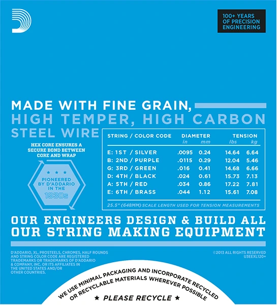 D'Addario - крупнейший в мире производитель струн для музыкальных инструментов, имеющий репутацию производителя с непревзойденным качеством. Инновационная упаковка, разработанная D'Addario, не наносит вред окружающей среде, защищает струны от загрязнения и коррозии. Все струны D'Addario производятся в США на уникальном фирменном оборудовании, под контролем фирменной цифровой системы качества.