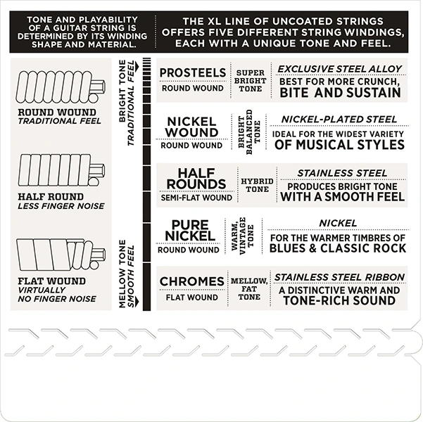 В результате струны дают продолжительный, выделяющийся яркий звук с прекрасной интонацией, который подходит для широкого круга гитаристов, играющих в разных музыкальных стилях.