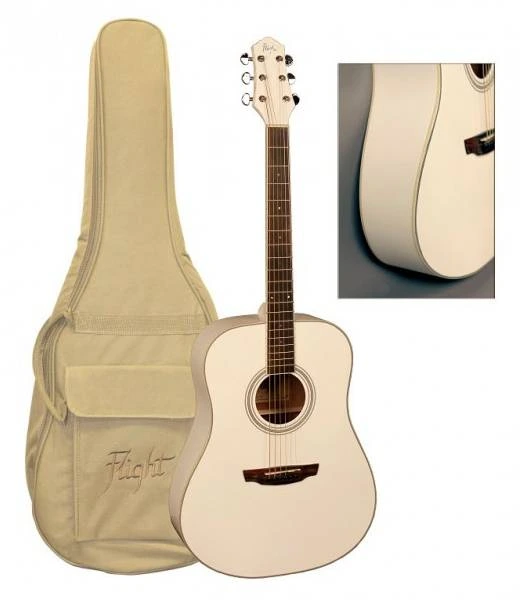 Гитара Flight AD 200-WH - прекрасный инструмент, который станет вашим верным спутником в любой ситуации. Этот инструмент обладает тремя неоспоримыми преимуществами, которые делают его хитом продаж: хороший звук, невысокая цена и неприхотливость в эксплуатации. Эту гитару вы всегда сможете взять с собой на природу, корпус гитары не требует постоянного ухода, увлажнения и поддержания нужной температуры в помещении. Обратите внимание на скос на корпусе под правую руку! Раньше таким скосом обладали только электрогитары, теперь Flight AD 200-WH воплощает это удачное решение для акустического инструмента. Просто сравните ощущения от игры на гитаре со скосом с ощущениями от обычной гитары и почувствуйте насколько это удобно!