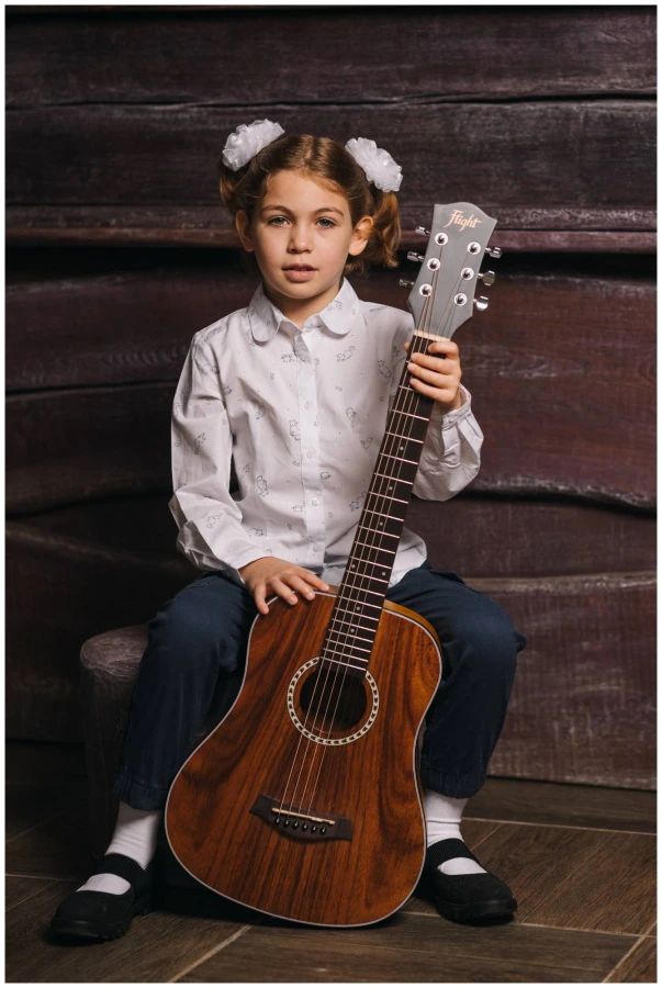 Корпус FLIGHT TR-1000 TEAK сделан из тика. Это очень красивая порода дерева, придающая звуку гитары мягкость, сбалансированность и чёткость.
