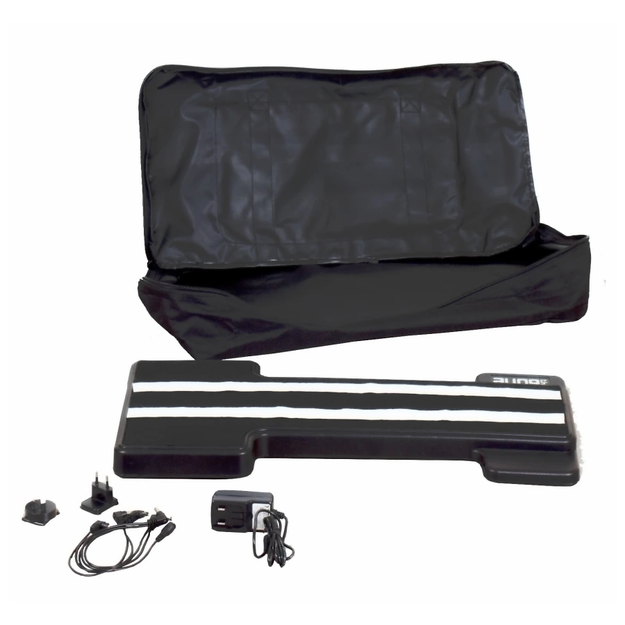 Литой пластиковый педалборд для крепления педалей эффектов с легким нейлоновым чехлом для переноски Размеры ДхШхВ - 595х285х105мм Блок питания и провода в комплекте. Ручки для переноски. Карман для аксессуаров