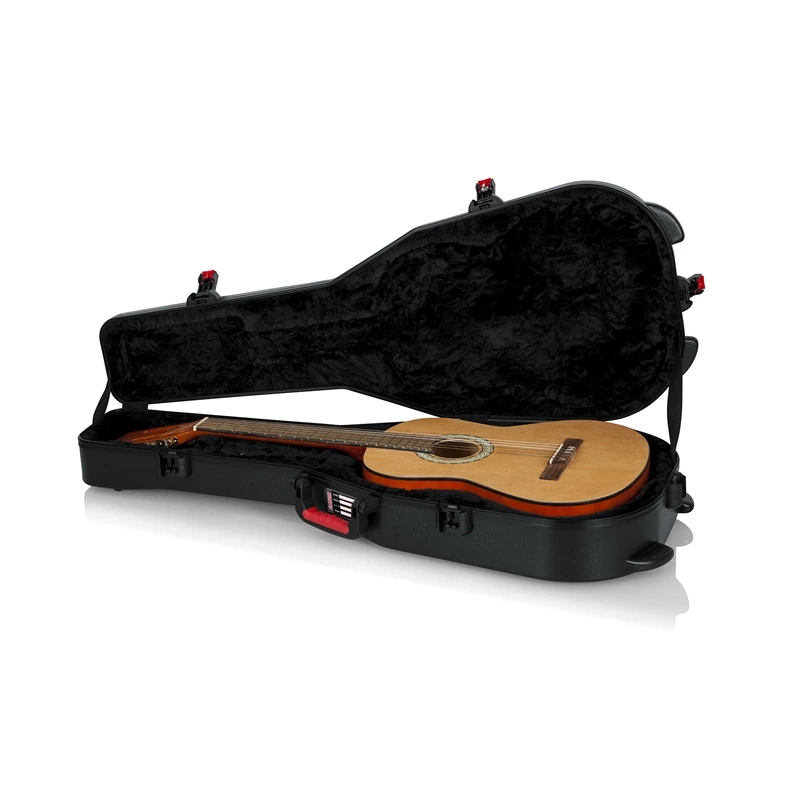 Литой полиэтиленовый кейс для классической гитары Надежные замки Превосходная внутренняя отделка Комфортная ручка. Внутренние размеры: длина корпуса: 540 мм, высота: 114 мм, ширина 394 мм / 267 мм / 292 мм. Общая длина: 1016 мм Внешние размеры: 1080 мм х 432 мм х 171 мм Вес 4.9 кг.