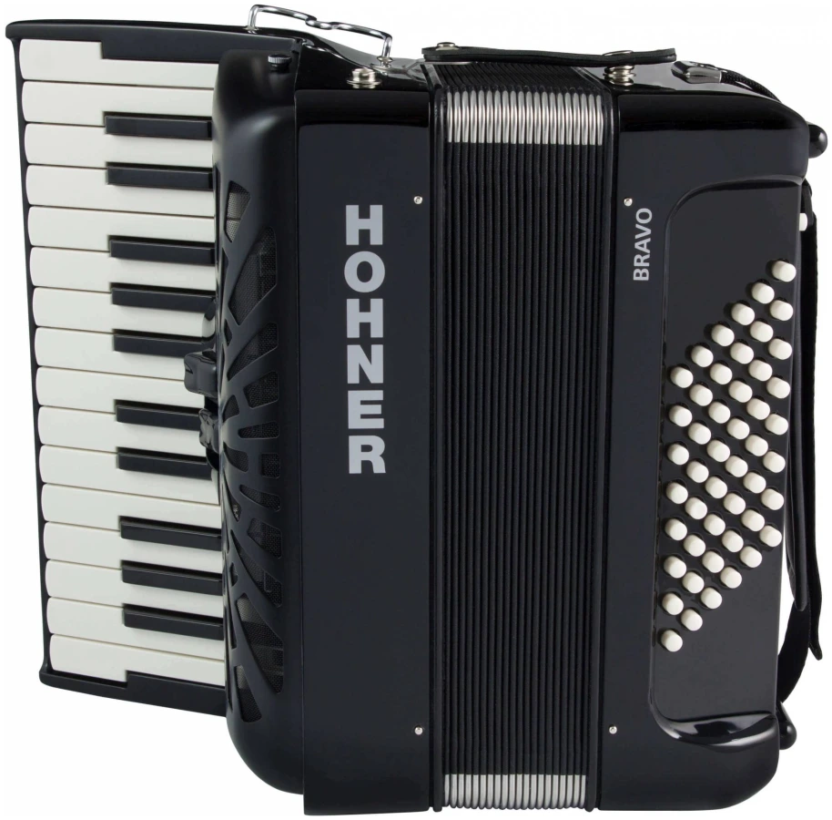 HOHNER The New Bravo II 48 black это инструмент размера 1/2, двухголосный. В комплект входят: ремни, чехол.