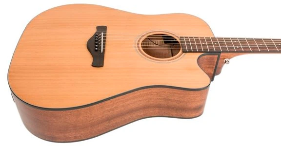 IBANEZ AW65ECE-LG шестиструнная электро-акустическая гитара в корпусе дредноут с удобным вырезом. Это инструмент с прекрасным звуком, в конструкции которого используются высококачественные материалы и комплектующие. AW65ECE-LG гитара из линейки Artwood, которая сочетает в себе традиционные черты и современные технологии, что позволило добиться прекрасного звучания как в акустике, без подключения, так и с усилением. Верхняя дека гитары выполнена из цельного кедрового дерева. Нижняя дека и обечайка, а также гриф AW65ECE-LG - из красного дерева. На грифе 20 ладов, мензура 651 миллиметр. Накладка на гриф и бридж гитары - палисандровые. Ширина верхнего порожка 43 мм. Литые хромированные колки отлично держат строй, они расположены на голове грифа симметрично, 3 сверху и 3 снизу. Пьезозвукосниматель Fishman Sonicore и предусилитель Ibanez AEQ210RF с 2-полосным эквалайзером и встроенным тюнером дают прекрасное, сбалансированное звучание. Модель AW65-LG представлена в элегантном натуральном цвете дерева с матовым покрытием. На инструменте установлены струны D"Addario EXP11 Coated 80/20 Bronze толщиной .012 - .053.
