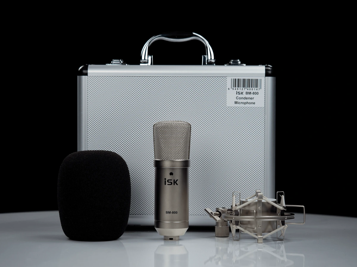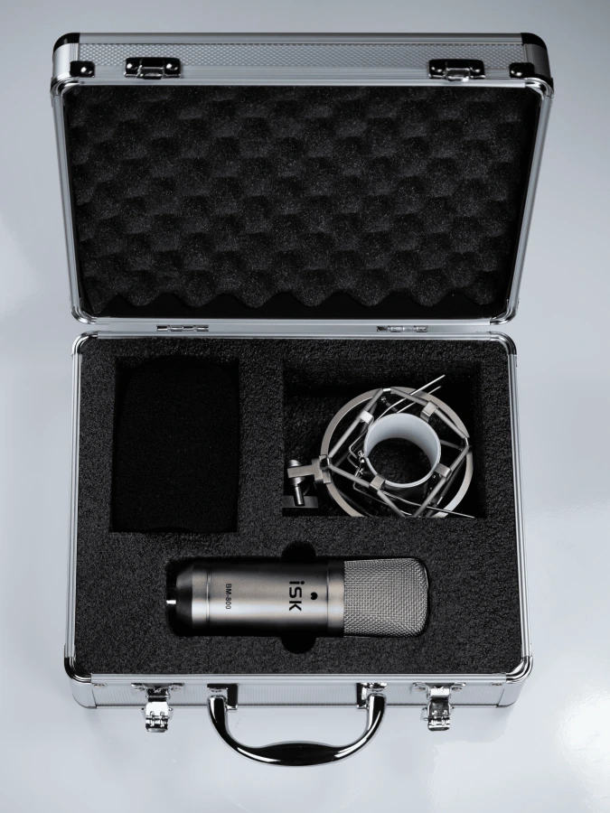 ISK BM-800 профессиональный конденсаторный микрофон в металлическом корпусе для записи и вещания. Микрофон обладает капсюлем с позолоченной диафрагмой диаметром 34мм. BM-800 является достаточно недорогим и наиболее оптимальным вариантом для любой домашней или профессиональной студии звукозаписи, поскольку обладает кардиоидной диаграммой направленности, высокой выходной мощностью и низким уровнем собственного шума. Помимо этого BM-800, являясь универсальной рабочей лошадкой прекрасно справится как с задачами озвучки акустических инструментов, так и с дикторской работой и стримингом.