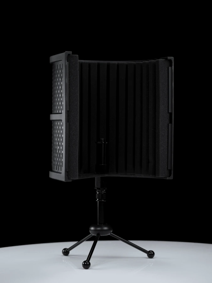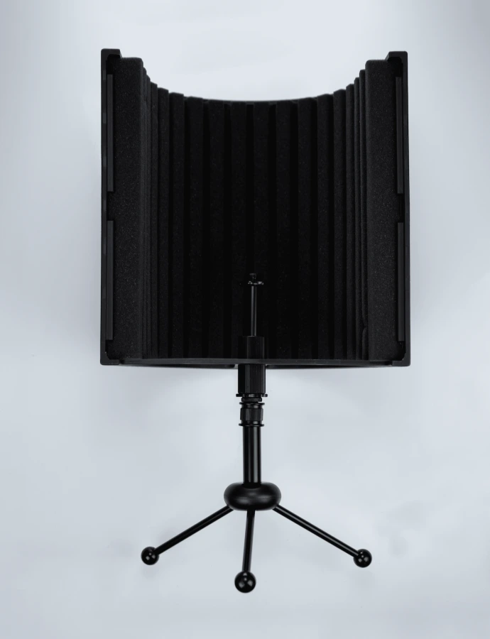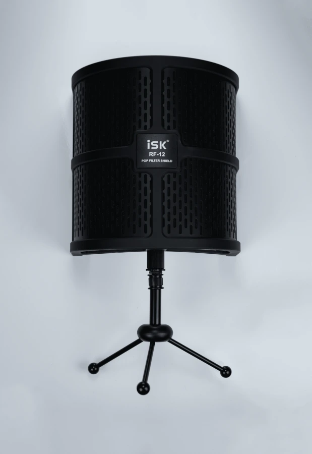 ISK RF-12 компактный экран для микрофона, который можно разместить как на столе, так и на стойке. В комплект к экрану поставляется устойчивая металлическая подставка типа тренога для настольного использования.