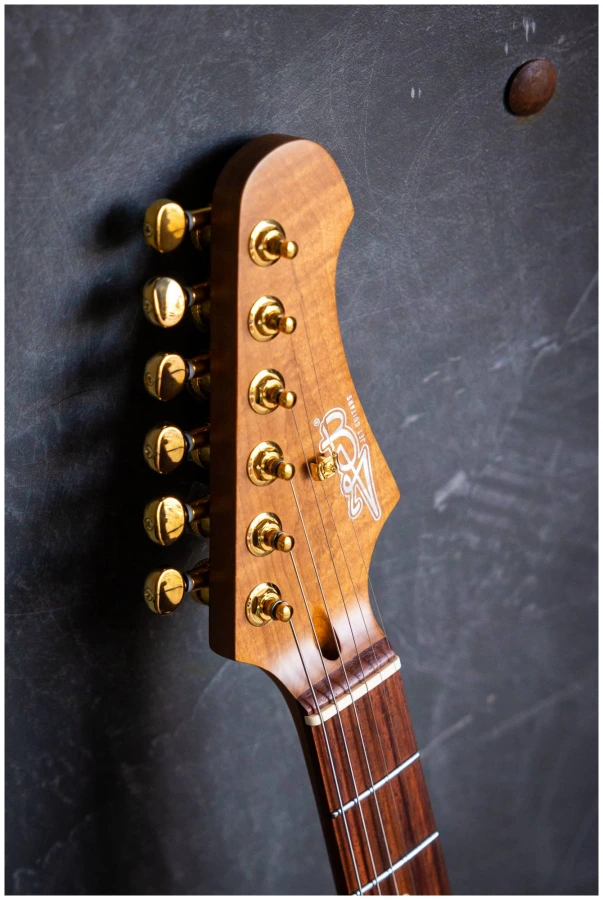 Гриф выполнен из канадского печеного клена (roasted maple). При такой обработке поры дерева максимально сжимаются и в процессе использования вода уже не будет выходить, ваша накладка не сожмется и лады не повылазят вне зависимости от влажности и смены температуры. Плюс такое дерево выглядит очень красиво.
