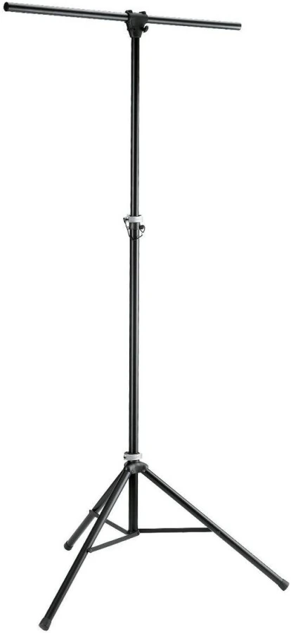 Стойка K&M представляет собой чрезвычайно легкую алюминиевую конструкцию со штангой для осветительных приборов. Оборудована тремя опорными ножками с возможностью регулировки высоты. Высоту и расстояние между опорными ножками легко скорректировать с помощью простых зажимных механизмов, которые обеспечивают устойчивое положение. Стойка предназначена для удержания дл восьми осветительных приборов.