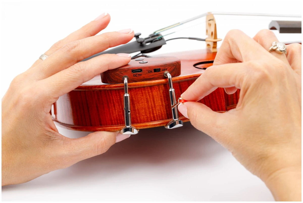 Съёмный звукосниматель VV-Wi со встроенной беспроводной связью и регулятором громкости для скрипки или альта.