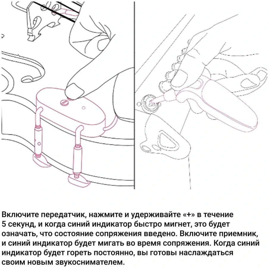 Звукосниматель поставляется с дополнительными элементами для крепления его на различных размерах корпусов скрипок и альтов. - Удобная зарядка через зарядный порт USB-C