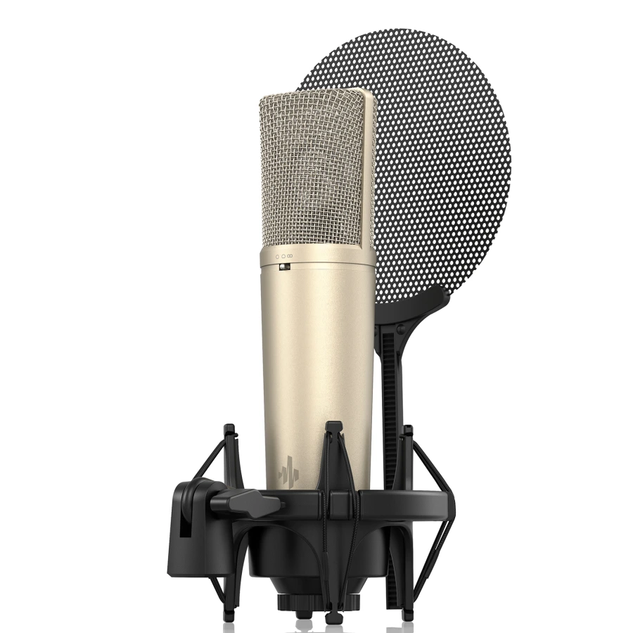 Donner DC-87 - профессиональный студийный конденсаторный XLR-микрофон с широким динамическим диапазоном и высоким уровнем звукового давления. Благодаря большому капсюлю с двойной диафрагмой и трем диаграммам направленности (кардиоида, всенаправленная и восьмерка) DC-87 является универсальной рабочей лошадкой для любой студии. Помимо этого микрофон имеет переключатель обрезного фильтра низких частот, а также комплектуется чехлом на молнии, амортизирующим креплением типа паук с поп-фильтром и кабелем XLR.