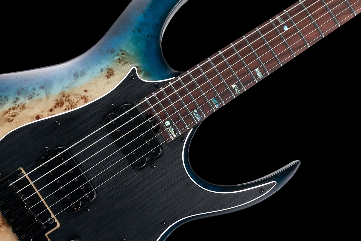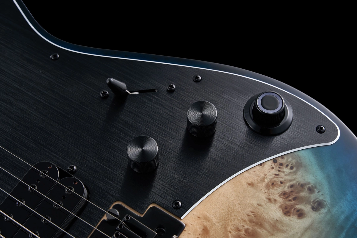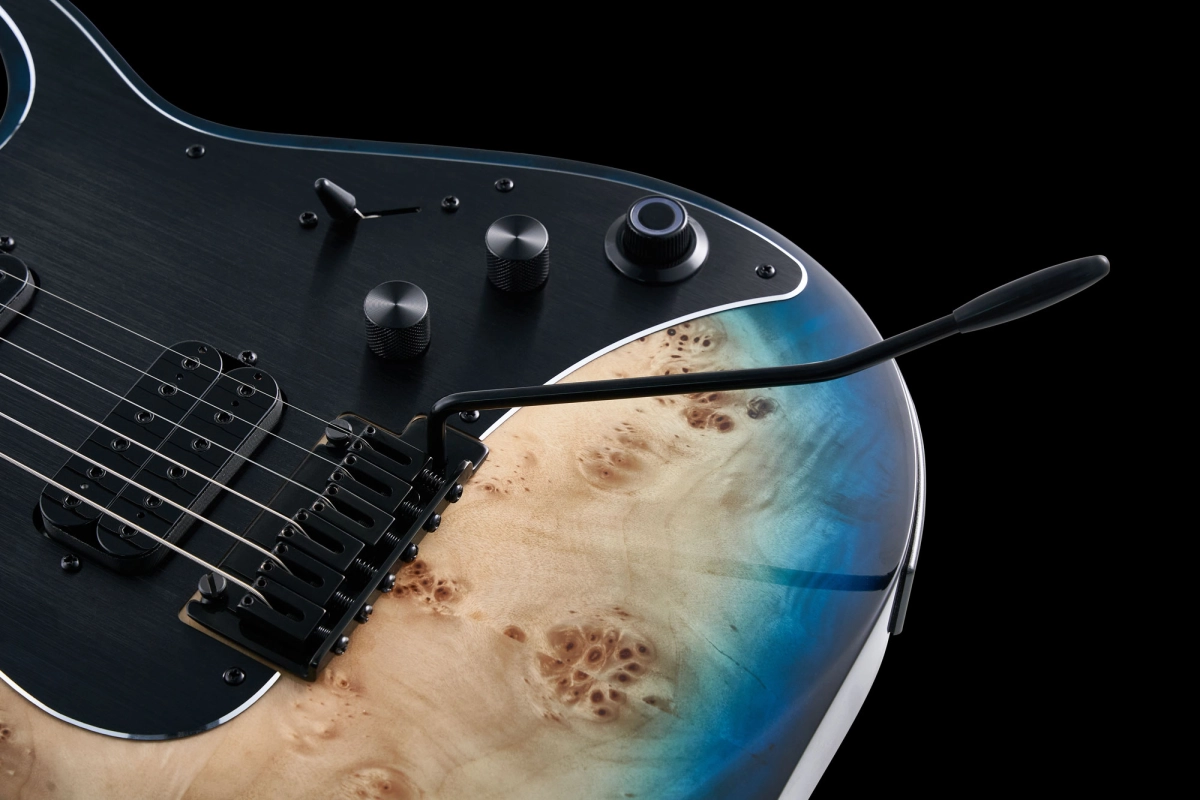 Резонансный результат этой комбинации клена, палисандра, ольхи и тополя впечатляет и усиливается нековым звукоснимателем GTRS HMT-1N и бриджевым GTRS HMT-1B. Благодаря черному 2-точечному бриджу GTRS PW гитара также получает дополнительную стабильность настройки и практичность тремоло, что является значительным улучшением по сравнению с оригинальным бриджем GTRS M1 на M800. Накладка грифа M810 украшена великолепной инкрустацией перламутром, добавляющей красочный блеск. В этом современном дизайне все еще присутствуют классические элементы гитары, такие как трехпозиционный переключатель, ручки тона и громкости, а также крепление для гитарного ремня.