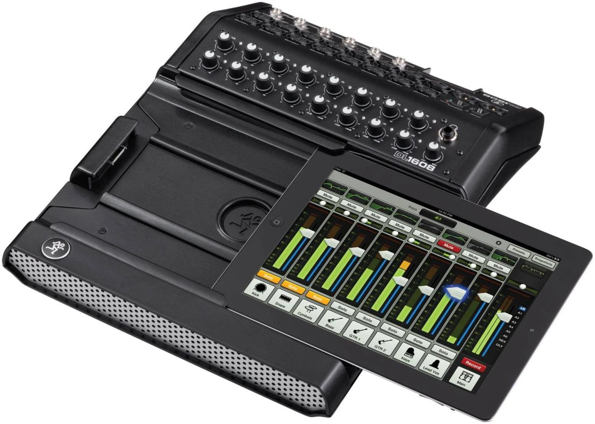 Mackie DL1608 совершает переворот в управлении живым звуком, объединяя мощность современного цифрового микшера с невероятной простотой и мобильностью iPad. Шестнадцать микрофонных предусилителей премиум-класса Onyx и 24-битные АЦ-/ЦА-преобразователи Cirrus Logic обеспечивают просто потрясающее качество звука, а прямое беспроводное подключение к iPad гарантирует возможность управлять миксом из любой удобной для звукорежиссера точки. Удаленное управление касается не только уровней в каналах — одним движением пальца легко контролируются мощнейшие плагины обработки, такие как эквалайзер, компрессор, разнообразные эффекты и так далее. DL1608 поддерживает одновременное беспроводное подключение до 10 управляющих устройств iPad. Забудьте про громоздкие микшерные пульты и башнеобразные рэки с процессорами обработки. Теперь вся мощь сосредоточена только в руках звукорежиссера!