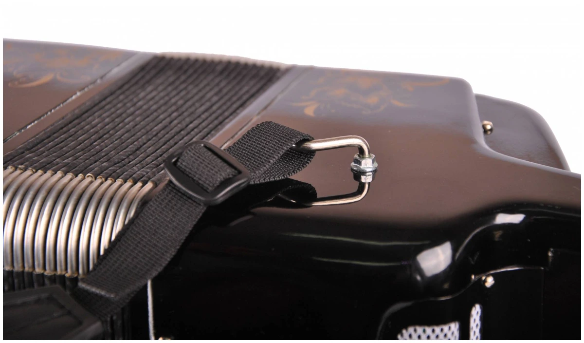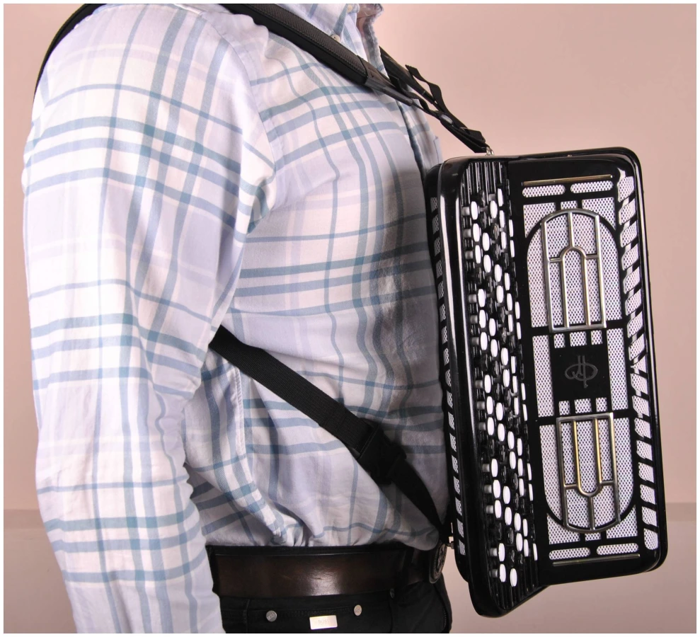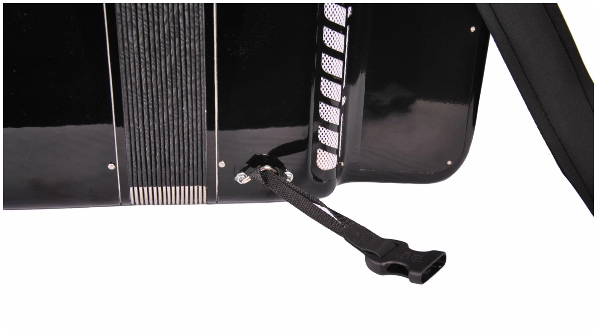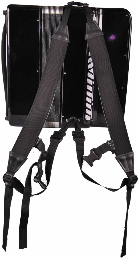 В комплекте ремней для баяна и аккордеона применяется фурнитура, используемая для производства снаряжения альпинистов. Данная фурнитура легко соединяется с инструментом при помощи удобных крепления в верхней части, и двух быстросъемных замков в нижней. Материал с эффектом памяти, равномерно распределяет нагрузку так, что даже ваш привычный инструмент покажется легче.