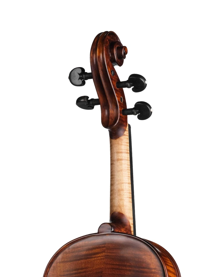 Скрипка профессионального уровня изготовленная из древесины самого высокого качества: ели для верхней деки и клена с сильной волной для задней деки и обечаек. Инструменты серии Professional Gama — это качество материалов, мастерство изготовления и замечательные звуковые характеристики по приемлемой цене.
