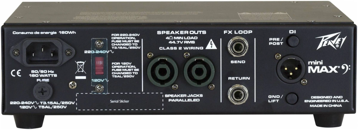 Обладая прочной конструкцией, которой славится Peavey, MiniMAX создан, чтобы выдерживать годы интенсивного использования в турах. Удобная задняя панель усилителя имеет все возможности подключения, необходимые для подключения эффектов или подключения к системе звукоусиления.