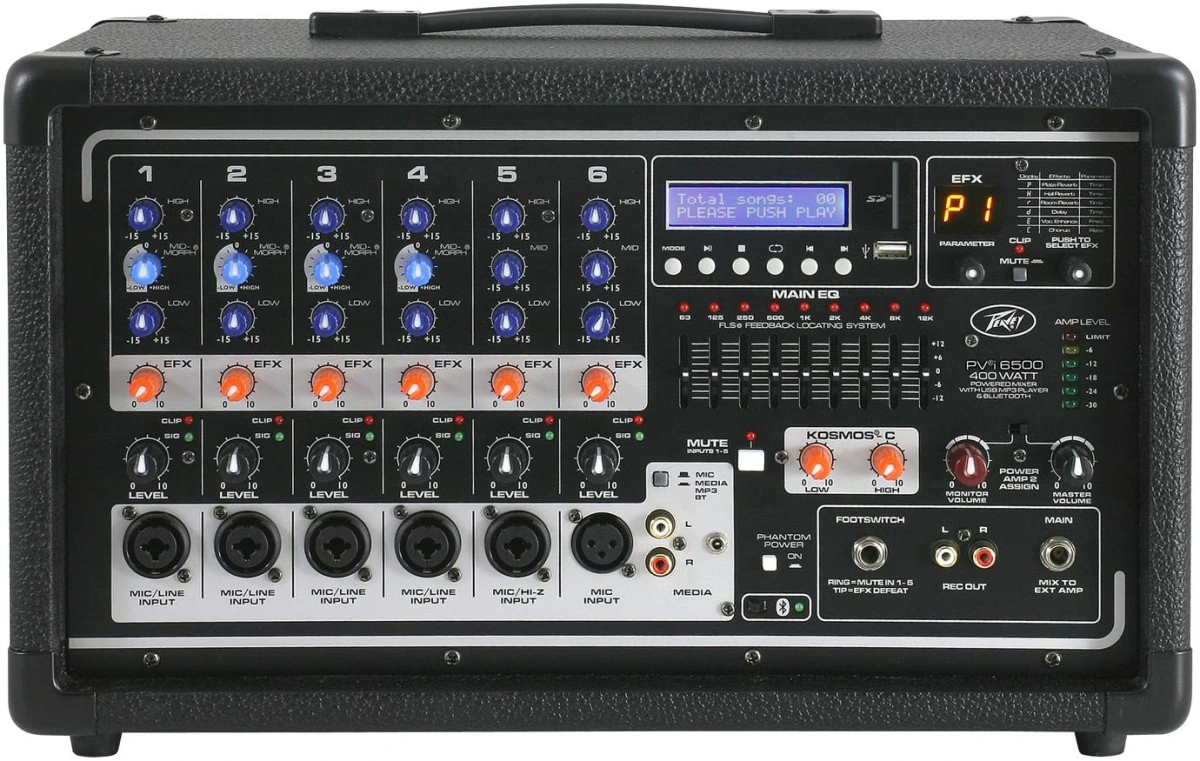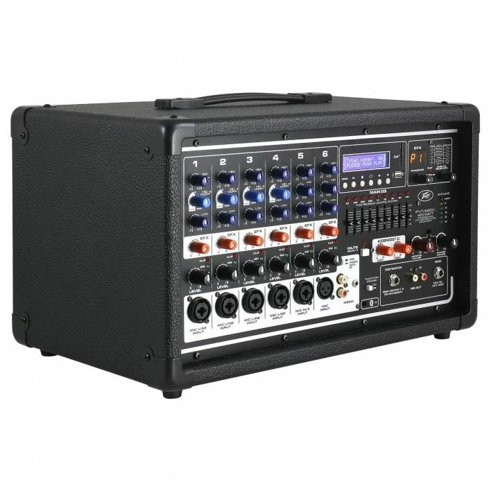 Peavey PVi 6500 – активный многофункциональный шестиканальный микшерный пульт, оборудованный всем, что требуется музыканту. Он предлагает одновременное использование шести комбинированных входов XLR/TRS с микрофонными предусилителями Peavey Silencer. Мощность усилителя составляет 400 Вт кристального чистого и четкого звука.