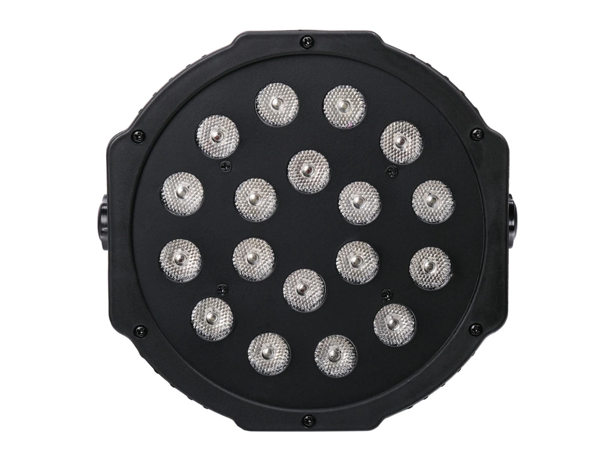 Профессиональное оборудование, не для бытового использования Мощность: 18х1Вт (6R+6G+6B).